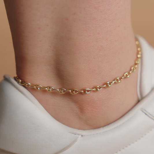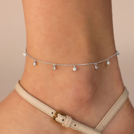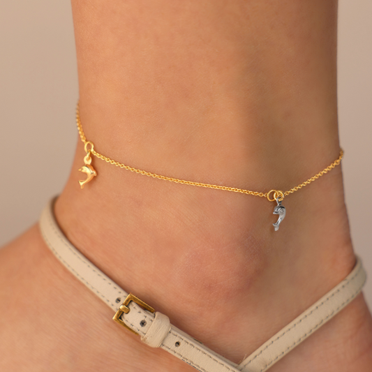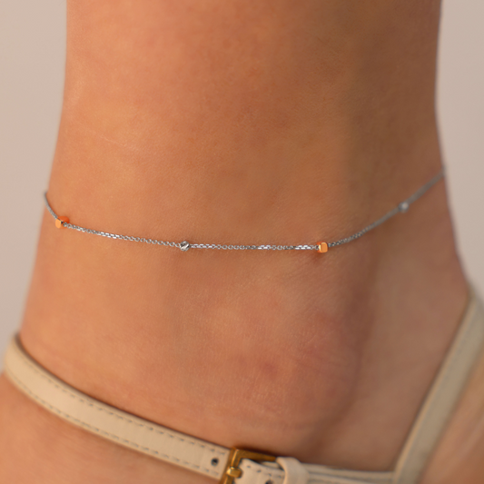 18k Yellow Gold / White GoldBalls And Clover Anklet