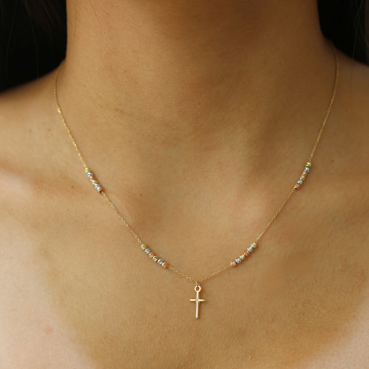 Three Gold 14kSold outDiamond Cut Two Cross Rosary