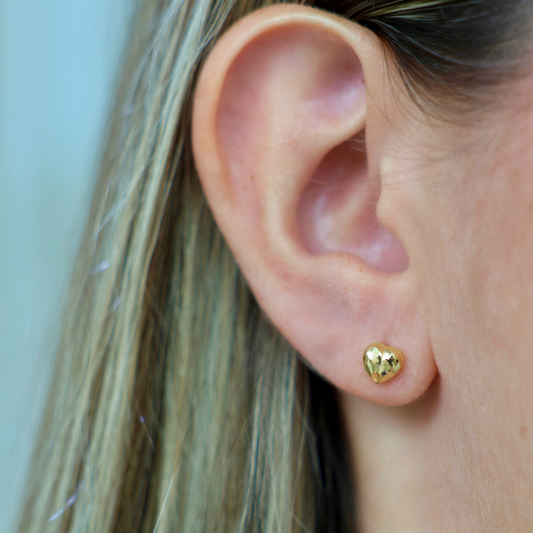 Yellow Gold 18ktDiamond Cut Heart Puff Earring