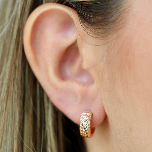 18k Rose GoldDiamond Cut Huggies
