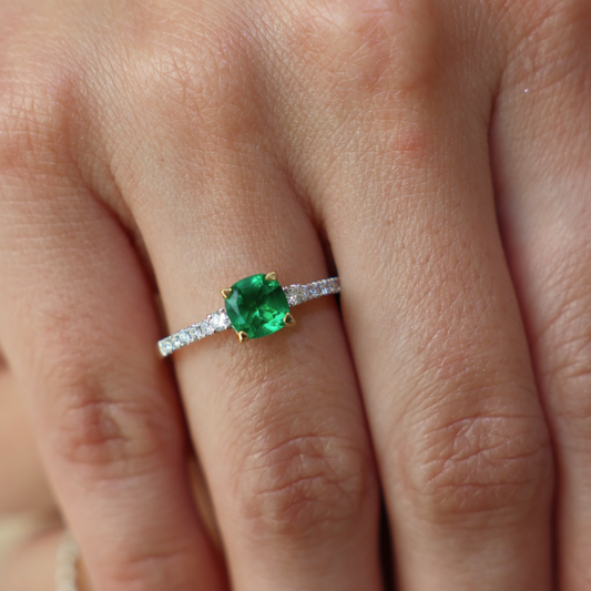 18k Yellow GoldFlower With Diamond and Emerald Stud