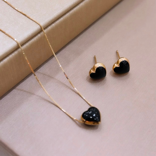 18k Yellow GoldBlack Heart Puff Stud Medium