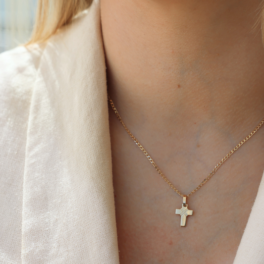 18k Yellow GoldCross Fancy Style Necklace