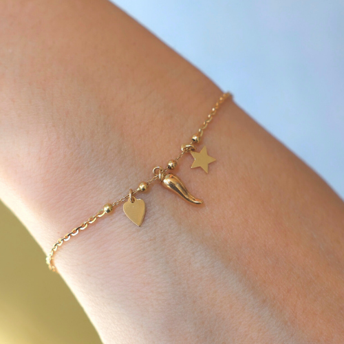 18k Yellow GoldHeart Cuerno and Star Bracelet