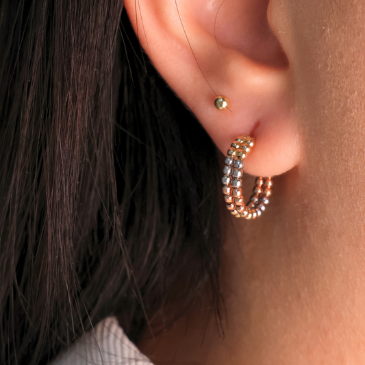18k Yellow GoldSaleThree Zirconia Piercing Style