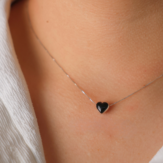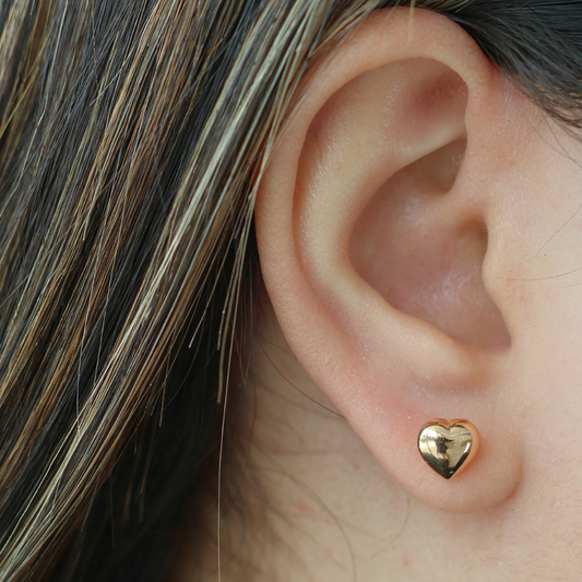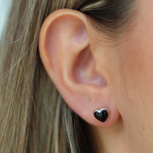 18k Yellow GoldBlack Heart Puff Stud Medium