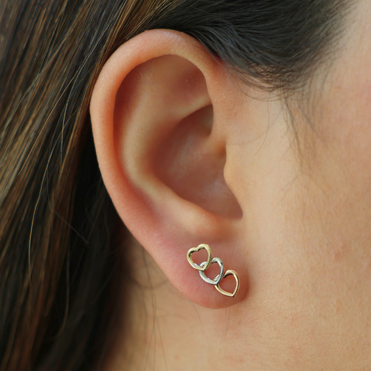 18k Tri-colorLarge Heart Circle Earring Three tone