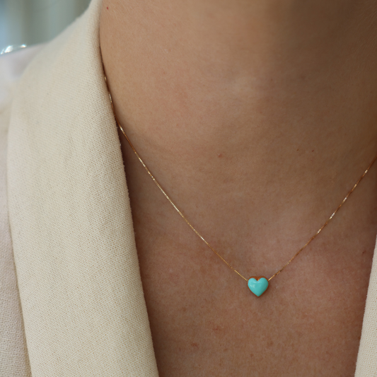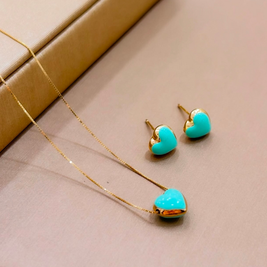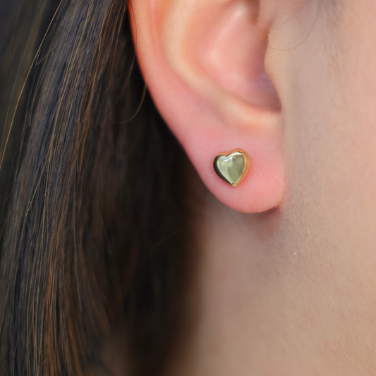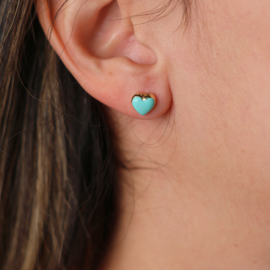 18k Yellow GoldTurquise Heart Puff Stud Medium