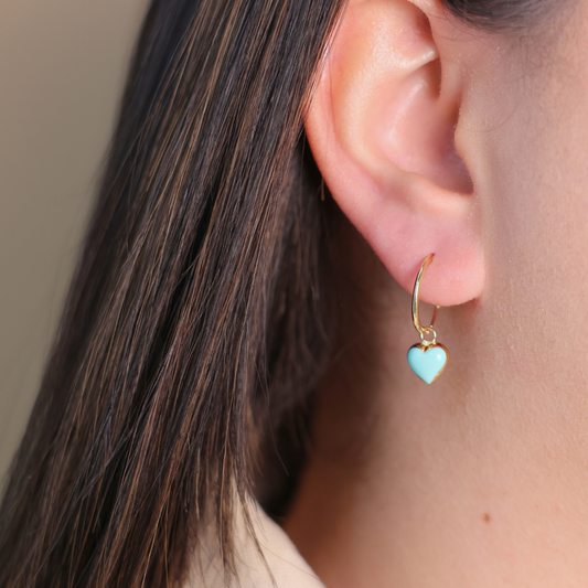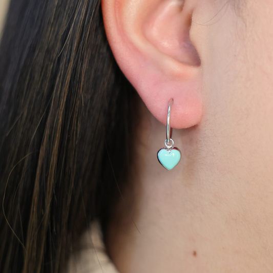 18k White GoldTurquoise Heart Puff Huggies white gold