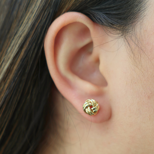 18k Yellow GoldDiamond Cut Big Knot Stud
