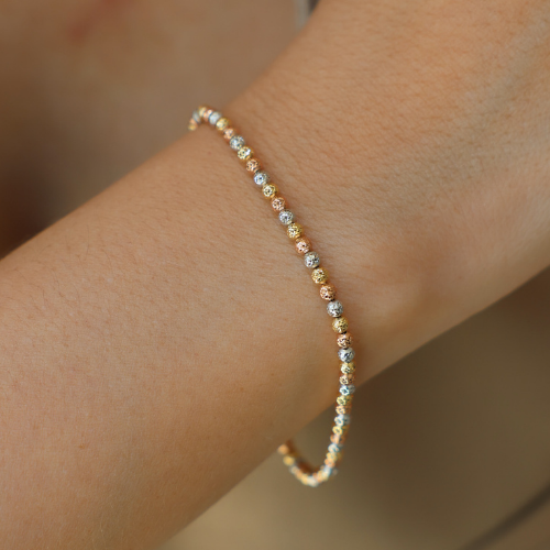 18k Tri-color GoldDiamond cut Balls Bracelet