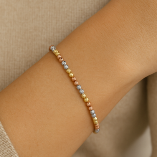 18k Three GoldDiamond Cut Rosary Style Bracelet