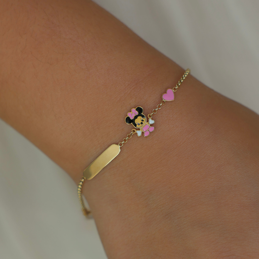 18k Yellow GoldPink Minnie Baby Bracelet ID