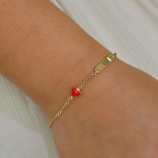18k Yellow GoldRed Heart Baby ID Bracelet