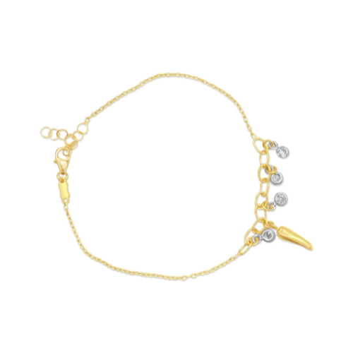 Stand out with the Cuerno Bracelet in Yellow Gold. Crafted with 18k gold, this piece weighs 2.20g and measures 7 inches. The sleek design features a curved horn motif, adding an elegant touch to any outfit. Elevate your style with this versatile bracelet, perfect for both casual and formal occasions. Illuminate your look with the luxurious shine of this exquisite piece.