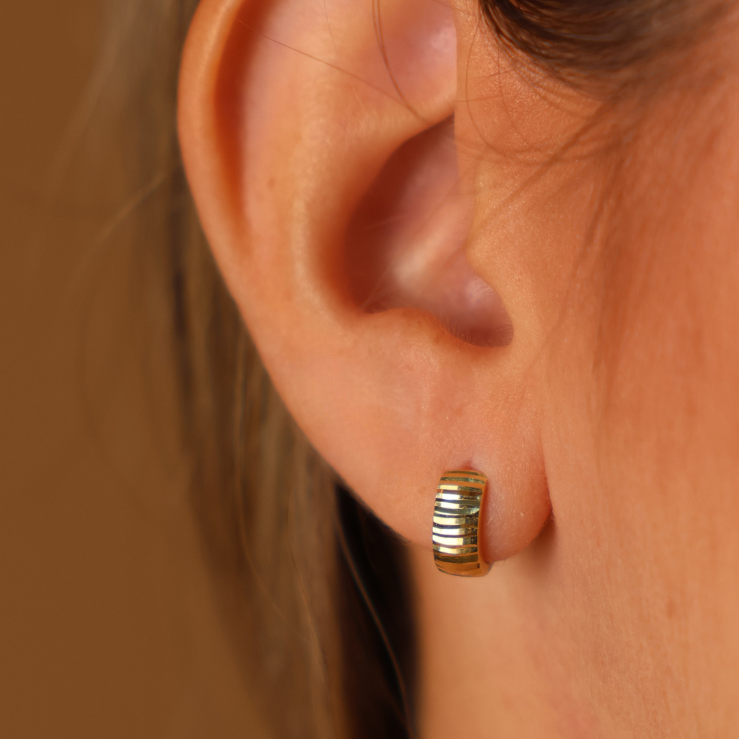 Elevate your style with these Mini Huggies. Crafted from 18k gold, these delicate earrings weigh just 2.00g. At 10mm in diameter, they're dainty yet eye-catching. Versatile enough for everyday wear or a special occasion, these huggies are the perfect addition to any jewelry collection. With their secure latch closure, you can confidently wear them all day long. Add a touch of elegance to any outfit with these stunning Mini Huggies.