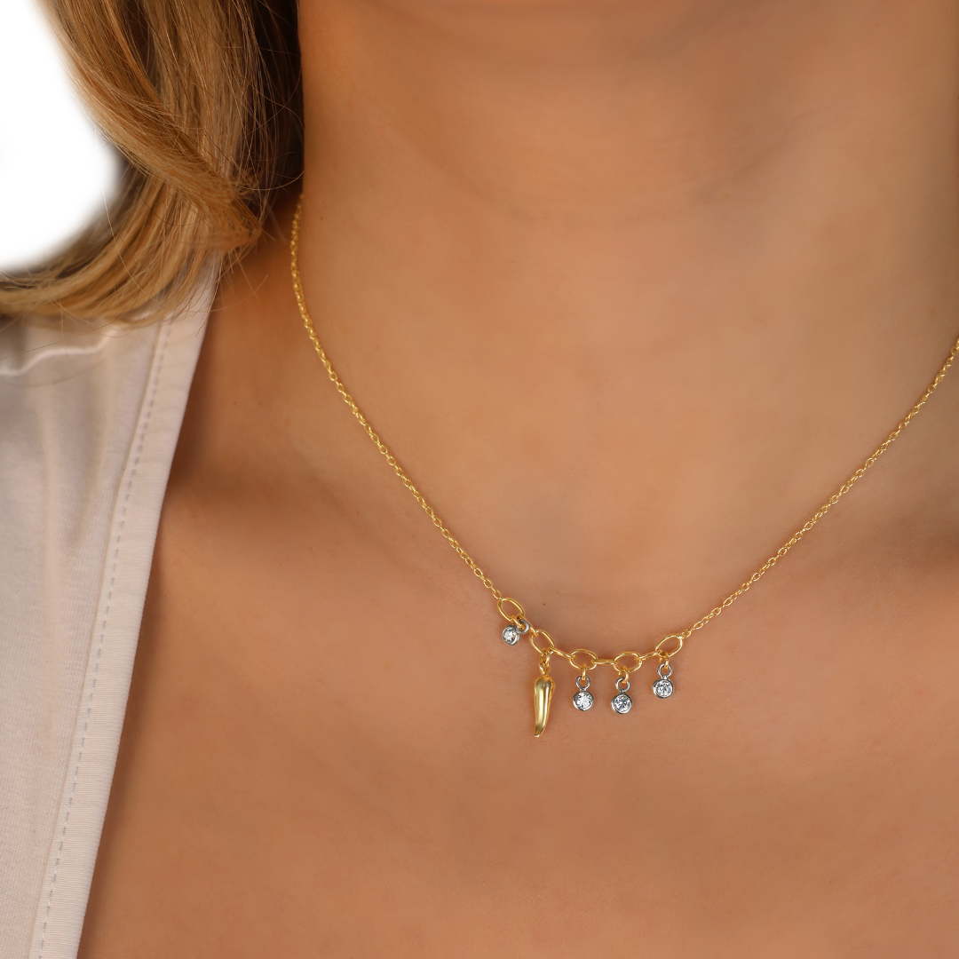 Introducing our Cuerno Necklace in Yellow Gold. Crafted with 18k gold, this stunning piece weighs just 2.90g. The delicate chain measures 16 inches, making it the perfect length for everyday wear. With its sleek design and exquisite craftsmanship, this necklace is sure to become a cherished addition to your jewelry collection. Whether worn alone or layered with other pieces, the Cuerno Necklace is a versatile and timeless accessory. Elevate your style with this stunning piece today.