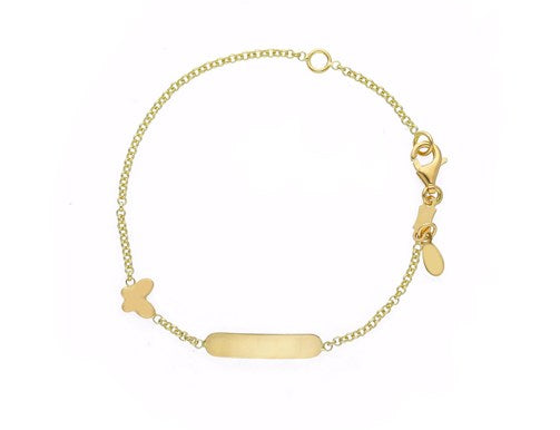 This Baby Bracelet Butterfly in Yellow Gold is a charming and delicate piece crafted from 18k gold. With a weight of 1.70g, it is lightweight and comfortable for your little one to wear. The bracelet measures 5.5 inches, making it the perfect size for a baby's delicate wrist. Adorned with a beautiful butterfly design, this bracelet is a precious keepsake that will be cherished for years to come.