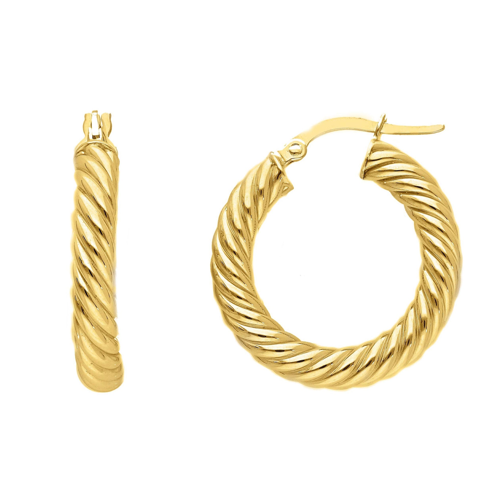 Introducing our Braid Hoops in Yellow Gold, crafted with 18k gold and weighing 1.40g. These stunning hoops measure 15mm in diameter, making them the perfect size for everyday wear. The intricate braid design adds a touch of elegance and uniqueness to these stylish earrings. Made with precision and attention to detail, these hoops are sure to make a statement. Elevate your look with our Braid Hoops in Yellow Gold.