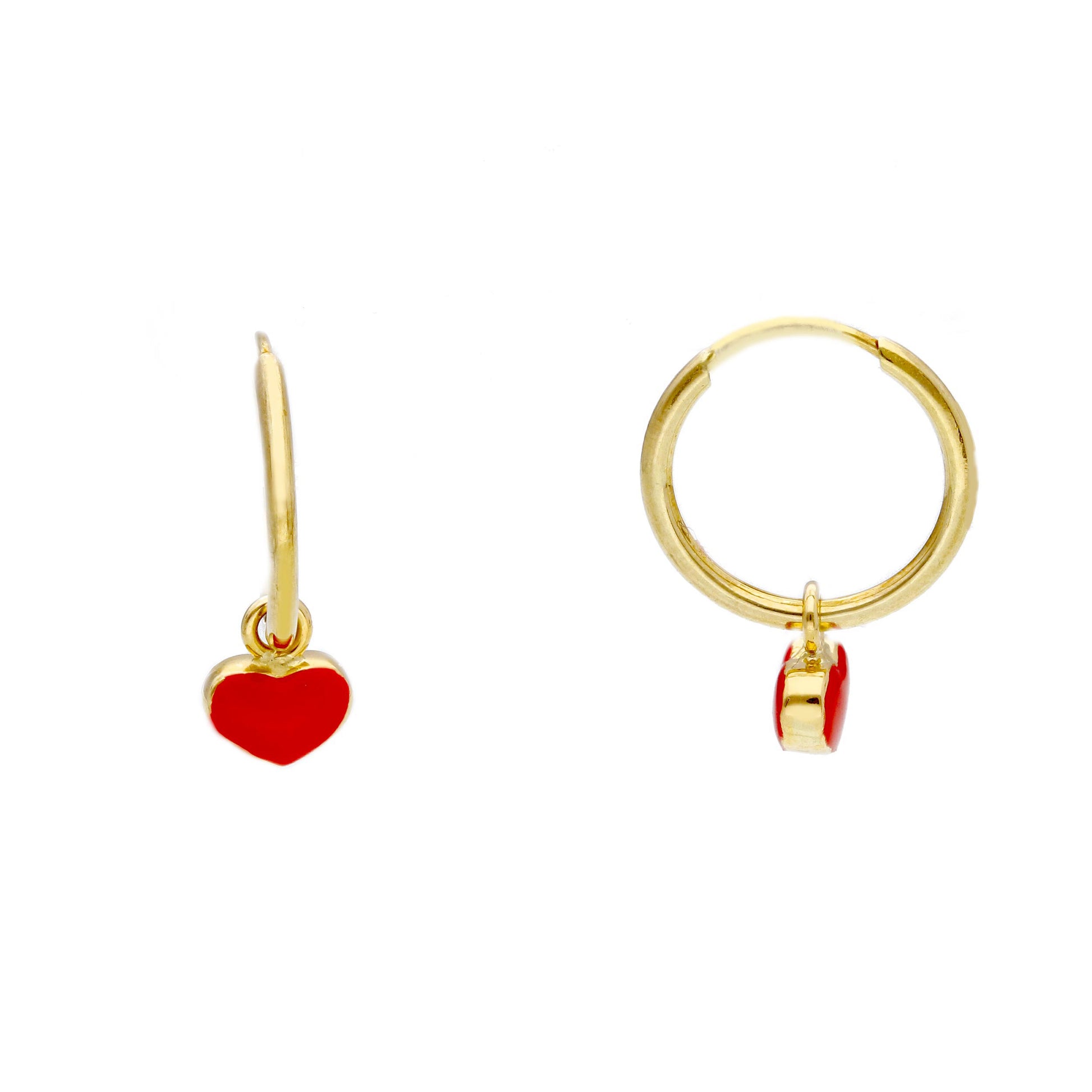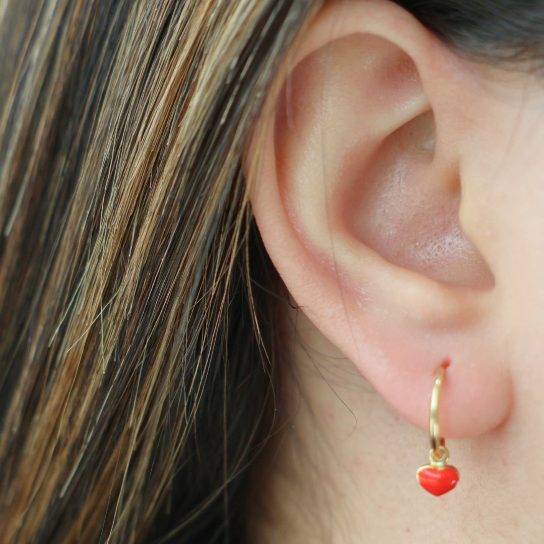 Add a touch of whimsy to your everyday look with our Huggies Heart Red earrings. Crafted from 18k yellow gold, these lightweight earrings weigh just 0.70g, making them comfortable for all-day wear. The heart-shaped design measures 12mm, adding a sweet and playful element to any outfit. These Huggies earrings are the perfect accessory for those who want to showcase their love for fine jewelry in a unique and fashionable way.