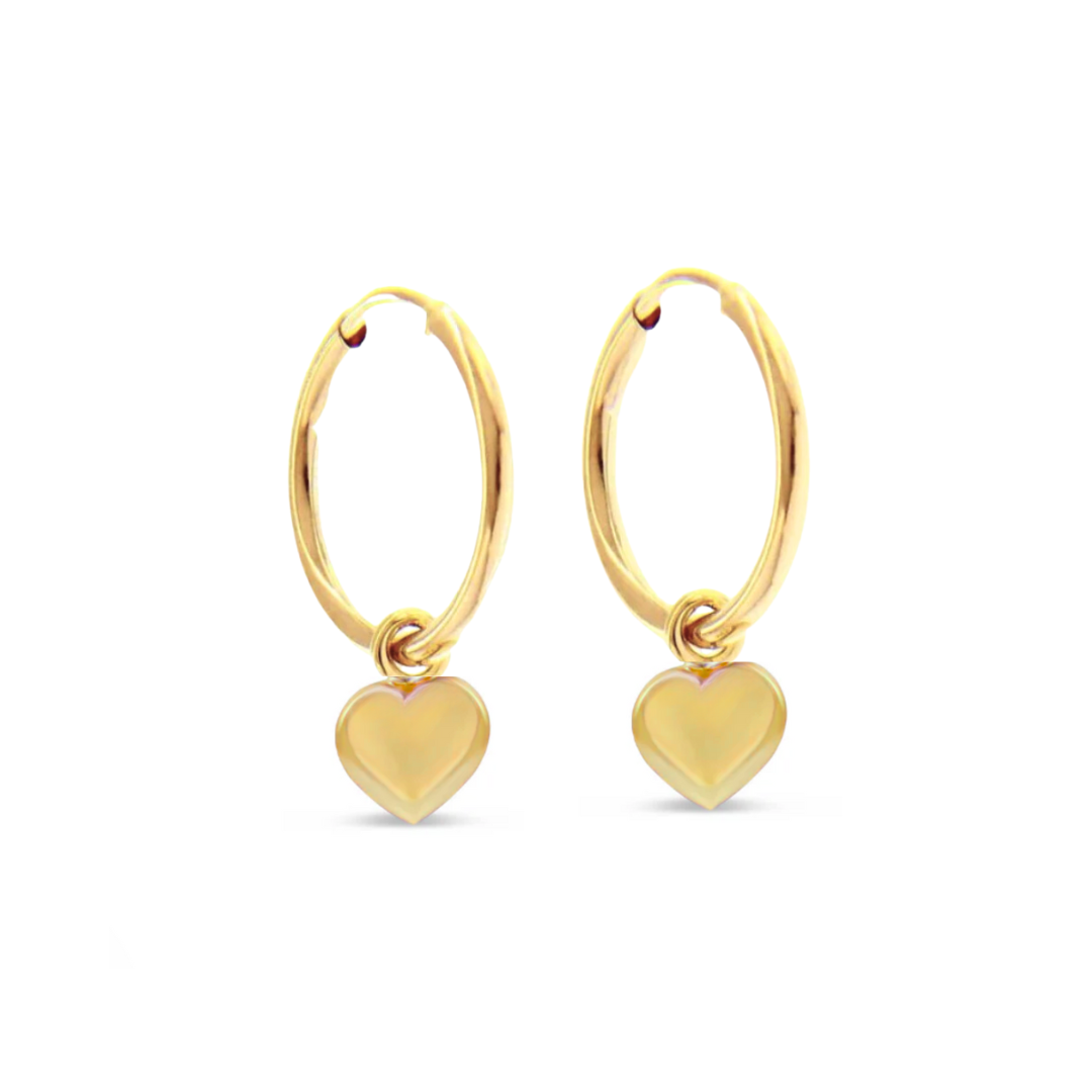Add a touch of whimsy to your jewelry collection with these Heart Puff Hoops. Crafted in 18k yellow gold, these lightweight earrings weigh only 1.30g, making them comfortable for all-day wear. The heart-shaped design measures 14mm, The heart shape adds a romantic and playful element, perfect for adding a touch of charm to any outfit. With their versatile design, these hoops can be dressed up or down, making them a versatile addition to your jewelry box.