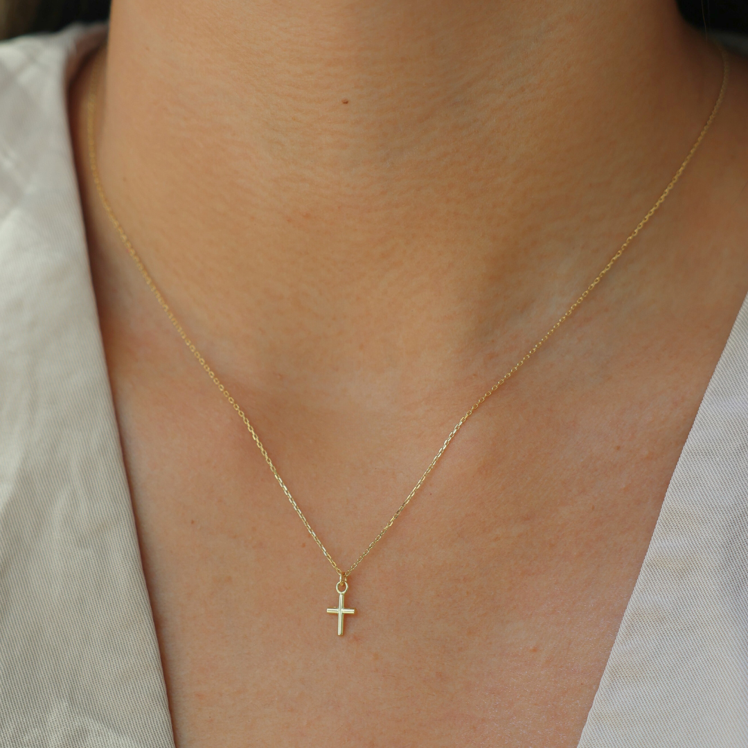 Add a touch of elegance to your look with our Mini Cross Necklace. Crafted from 18k yellow gold, this necklace features carefully designed balls that add a unique charm. With a weight of 1.40g and a length of 16 inches, it's the perfect accessory for any occasion. Elevate your style and make a statement with this stunning piece of jewelry.