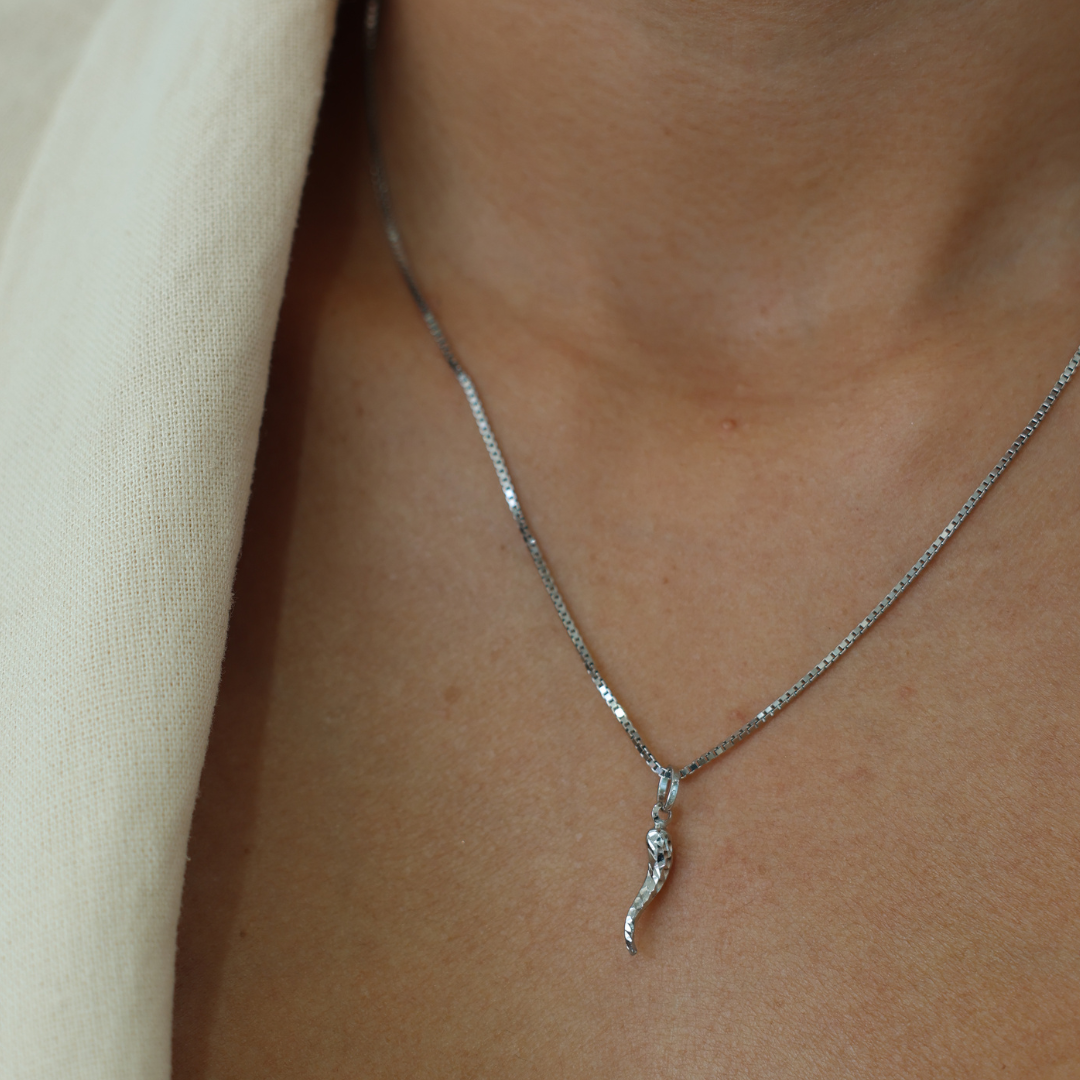 Introducing the Small Cuerno, a stunning piece crafted in 18k white gold. With its delicate weight of 0.40g, this elegant pendant measures 20mm. The white gold adds a touch of sophistication, making it perfect for any occasion. Its minimalist design and high-quality craftsmanship make it an ideal gift for someone special or a beautiful addition to your own jewelry collection. Don't miss the chance to own this exquisite piece.