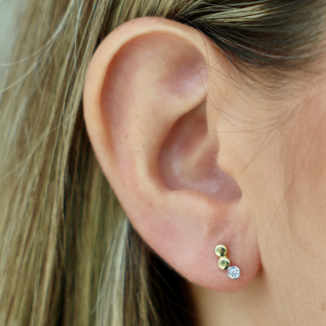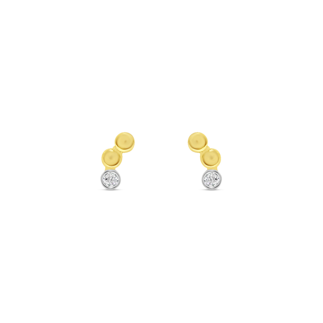 Add a touch of elegance to your look with our Fancy style Three Gold stud. Crafted in 18k two-tone gold, these earrings weigh 0.40g and measure 7mm. The intricate fancy style design adds a unique and fashionable twist to any outfit. Perfect for both special occasions and everyday wear, these earrings are a must-have addition to your jewelry collection.